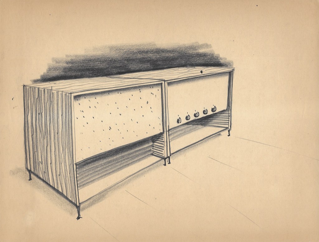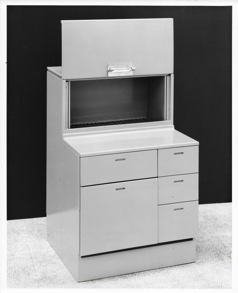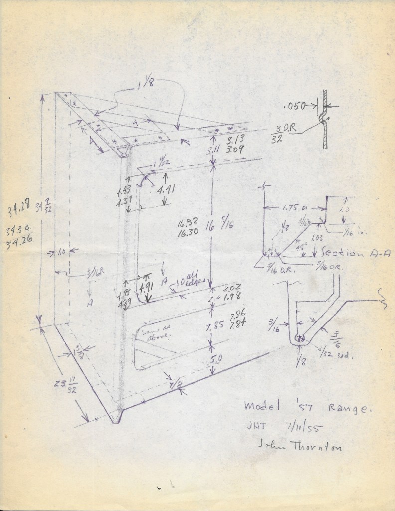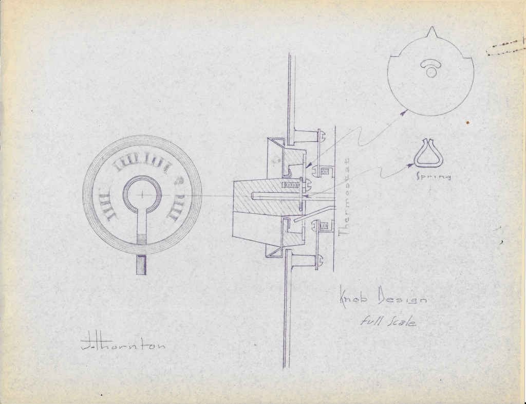 After college Thornton worked as an industrial engineer, first for GE then Henry Dreyfus in NYC. Below is a selection of digitized renderings and appliances Thornton designed.