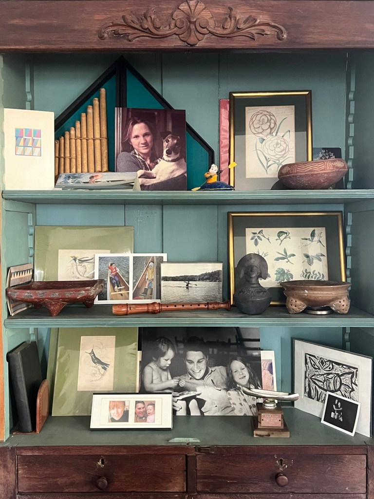 Having always been a museum-goer with a broad array of interests, Thornton had a particular interest in Acoma and Mimbres pottery of the southwest. When living in Boston, and with some regularity, he had taken his daughters on museum and gallery visits, and continued to do so, although with less frequency, when the children of his second family were old enough to be interested. In the spring of 2003, he and son Charlie went to see an exhibition of Mimbres pottery at Harvard’s Peabody Museum of Archeology and Ethnography in Cambridge. The intricate yet primal designs and patterns painted on their beautifully hand-smoothed surfaces triggered memories and inspired new ideas. Delving into a fresh body of paintings, the Constellation Series was born.