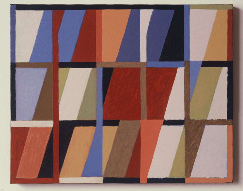 The 1970s would see further changes in Thornton’s work. After a brief stint constructing several large-scale outdoor sculptures, which were ultimately unsatisfying to his expressive needs and lacked the immediacy of visual realization he felt painting provided, Thornton began a lengthy series of grid paintings in 1973 to which he still returns from time to time. They developed in several directions and in subsets as investigations and permutations of color interaction, but with a strongly intuitive and personally idiosyncratic judgement at work.